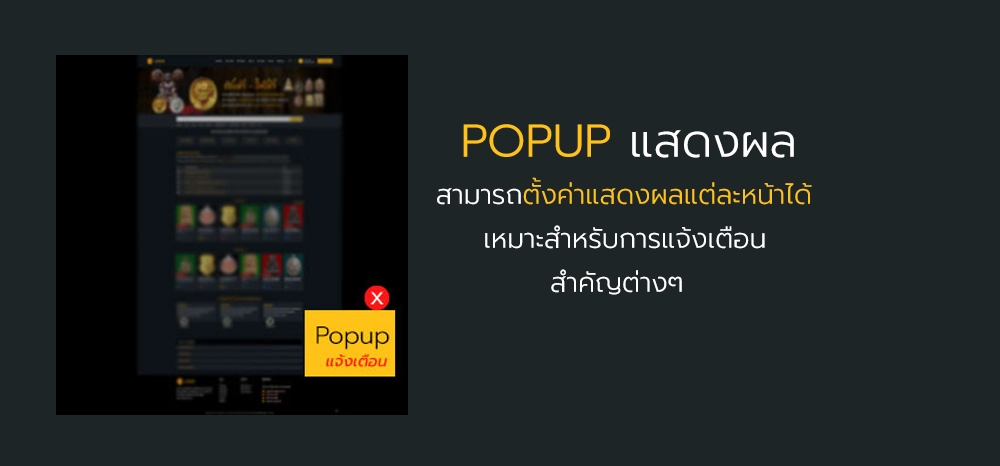 - มีระบบ Popup แจ้งเตือนบนหน้าเว็บแบบกำหนดหน้าได้